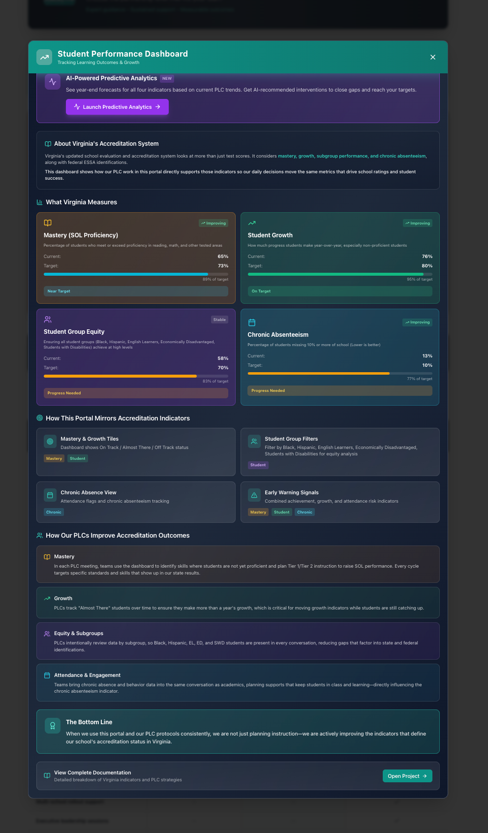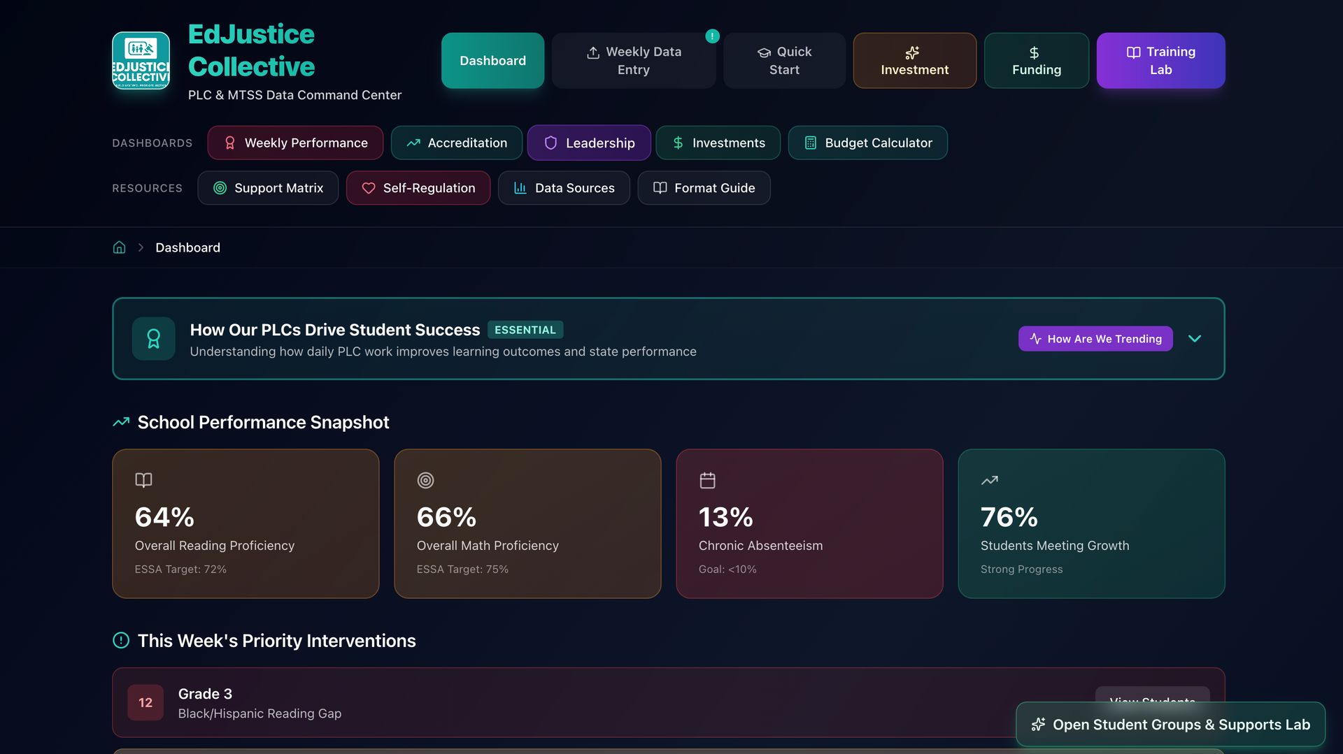 What we build: Weekly win logging that celebrates students who move tiers. Gap flagging that surfaces stuck students before they're forgotten. A dashboard that shows momentum — so your team knows the work is working.